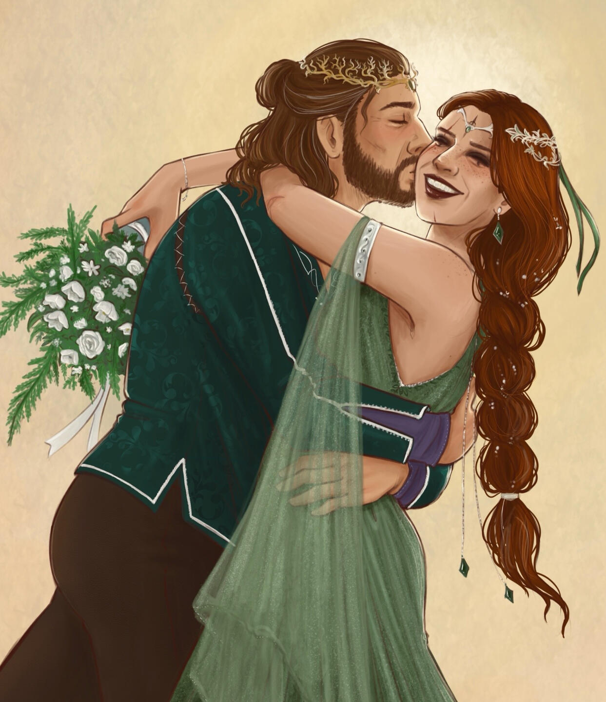 - Of course, feel free to let me know if you would like to leave anything up to my artistic choosing! I will be checking in during the process to ensure it is how you would like. But I am happy to do custom clothes, colors, and background.